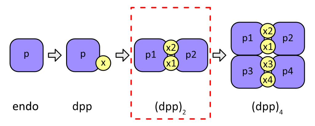 Human DPPI (also known as cathepsin C) is a ubiquitously expressed lysosomal peptidase with important physiological roles in the immune system, particularly for the activation of effector serine peptidases (granzymes, etc.). Therefore, it is a target for treatment of autoimmune and inflammatory diseases. Structure-wise, DPPI is special among papain-like peptidases because it contains an additional exclusion domain that is non-covalently attached to the catalytic domain (see image below). The exclusion domain restricts access of substrates into the active site and thereby determines the dipeptidyl-peptidase activity of DPPI. It also enables its tetramerization which is commonly considered as a unique feature of DPPI, as opposed to the monomeric structures of other papain-like peptidases.