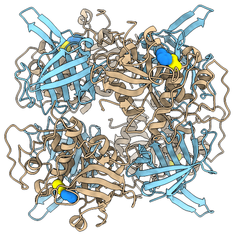 Crystal structure of the entire DPPI tetramer (PDB ID 1K3B).